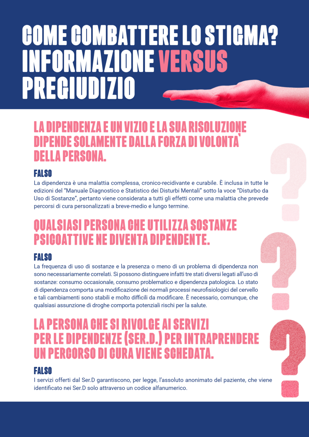 Nel testo sono riportate una serie di affermazioni che spesso vengono dette quando si parla di dipendenza, molte delle quali sono però false.